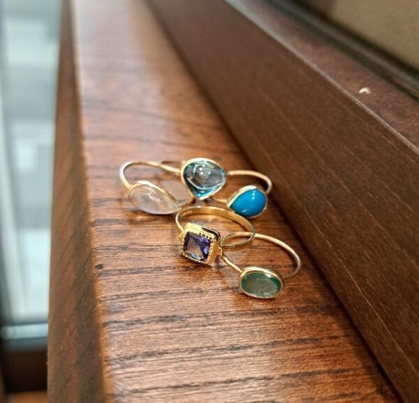 K18タンザナイト/ムーンストーン/エメラルド/ターコイズリング
